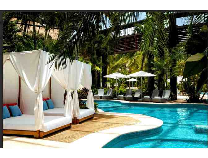 Relax in sprawling resort swimming pools and daybeds surrounded by tropics