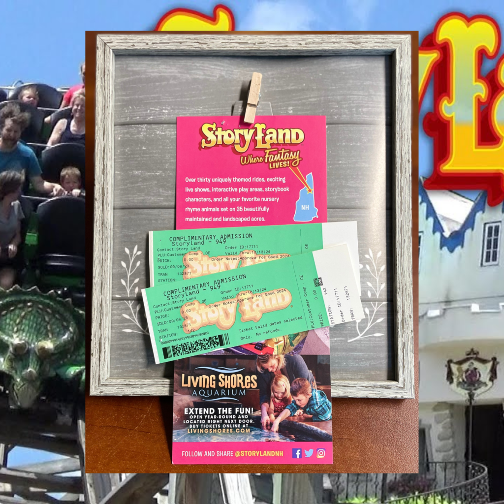Donated by StoryLand in Glen NH, this package includes two admission tickets. StoryLand has over thirty uniquely themed rides, exciting live shows, storybook characters, and all your favorite nursery rhyme animals set on 35 beautifully maintained and landscaped acres. For more information visit storylandnh.com