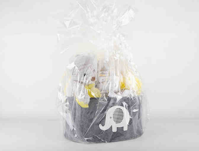 Have a lil one at home? This basket is equipped with your baby needs, including a teddy bear, bath towels, blankets & children's book.