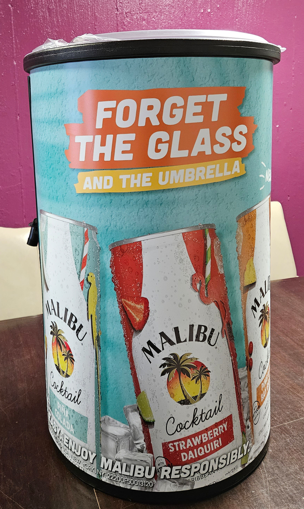 Malibu Cooler with Drain 32" high wih rollers with 4 Bottles of wine for your backyard parties!!!