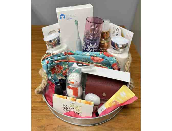 Immerse yourself in a world of indulgence with our exclusive self-care basket. This carefully curated collection includes an Olive Garden Gift Card, a chic Tory Burch Wallet, assorted body sprays, luxurious lotions, trendy Color Street Nail Strips, and a set of dazzling nail polishes. Bid now for the ultimate in relaxation and style!