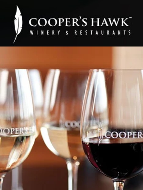Coopers Hawk Winery Package: Two Dinner for One certificates, each of which includes one entree, one glass of wine and tax. (value up to $130) Expire 1/31/24.