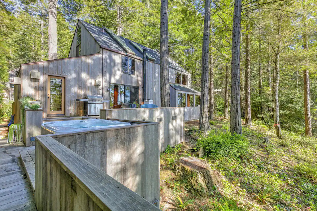As seen in Dwell, Turnbull's Baker House is a Sea Ranch classic Binker Barn resting on 2 acres of redwoods. While it was built in 1968, it's been updated to make sure you have everything you need for a private and relaxing stay: the separate office has monitors and 300+ Mbps internet, the kitchen is fully-equipped, and the garage has a level 2 EV charger and a Peloton. Enjoy the outdoors year-round from the hot tub or the Galanter & Jones heated furniture that overlooks the forest and ocean.