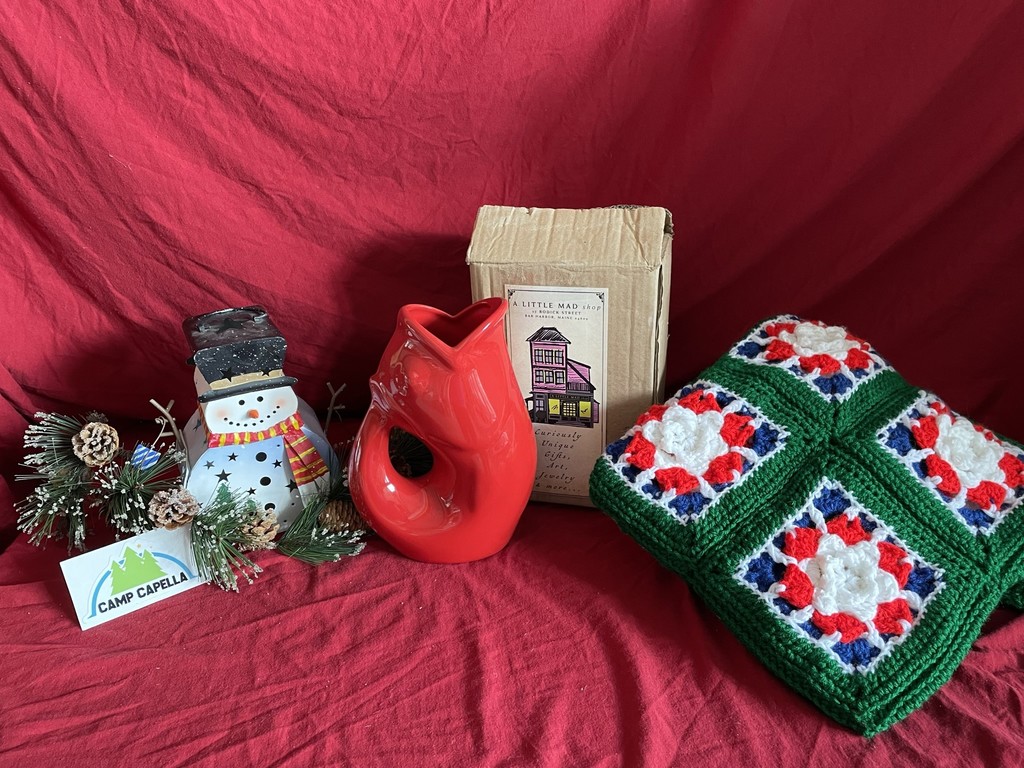 Visit A Little Mad Shop for all your curiously unique gift needs. They have donated us a beautiful Red Gurglepot for this years online auction. In this bundle you will also find a matching Green and Red knitted blanket thanks to Pricilla Merchant-Anderson.