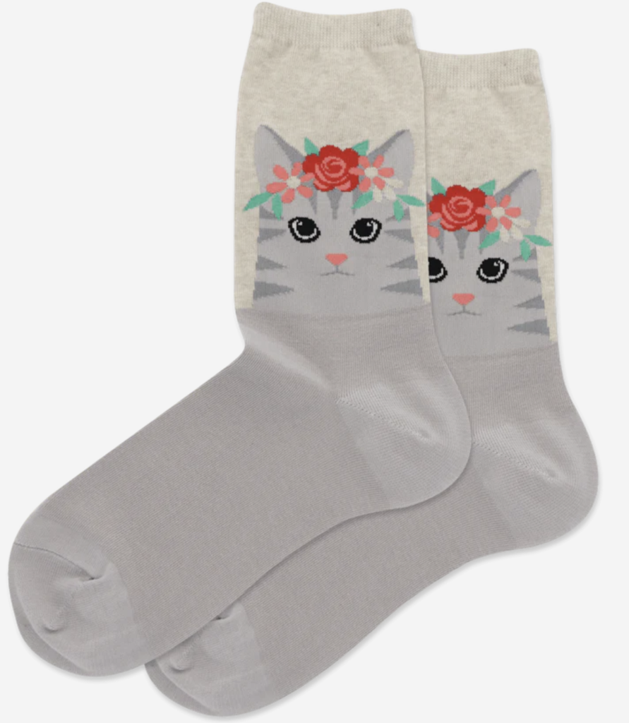 HOTSOX WOMENS CAT FLOWER CROWN CREW SOCKS