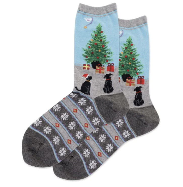 Singular comfort and eccentric vibes unite in these dog Christmas tree socks. The crew silhouette finds perfect balance with the bold, noteworthy design.