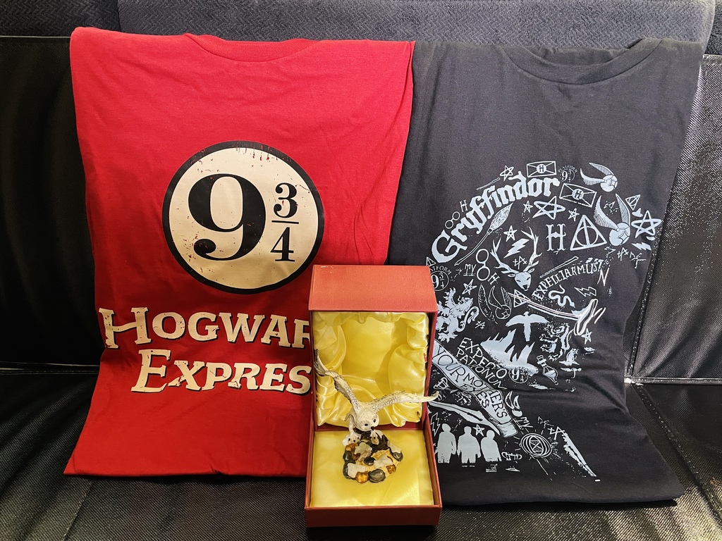 2 Harry Potter Shirts and Beautiful Hedwig Figurine