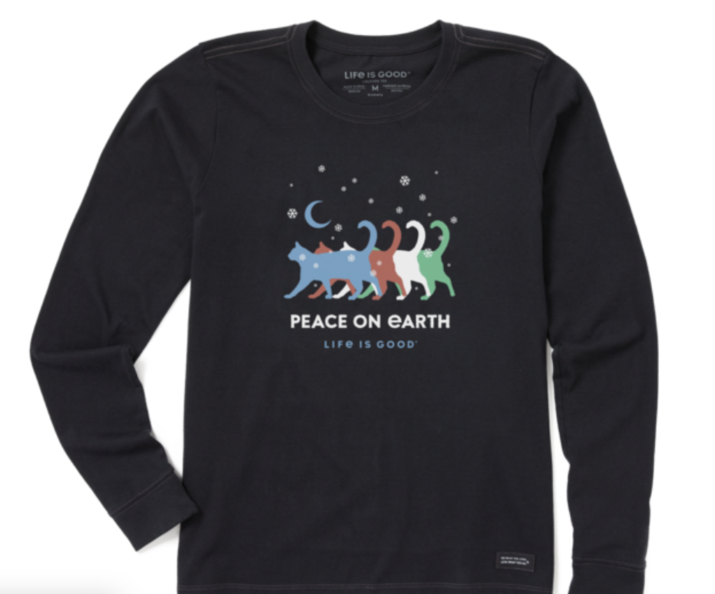 Life is Good Womens Peace on Earth Cats Long Sleeve Crusher Tee