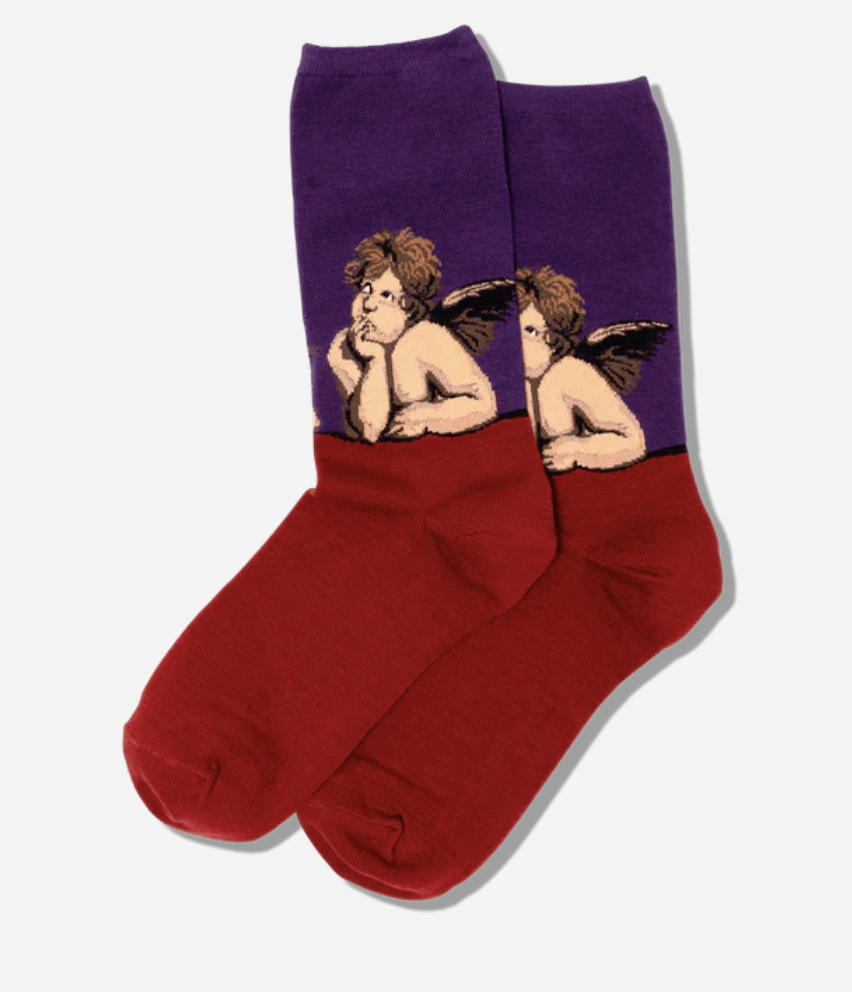 Fly with the angels in style! HOTSOX Womens Raphaels Angels Crew Socks feature the classic art of Raphael, perfect for an angelic look with a touch of art history. Show off your heavenly style with these chic and comfy socks!