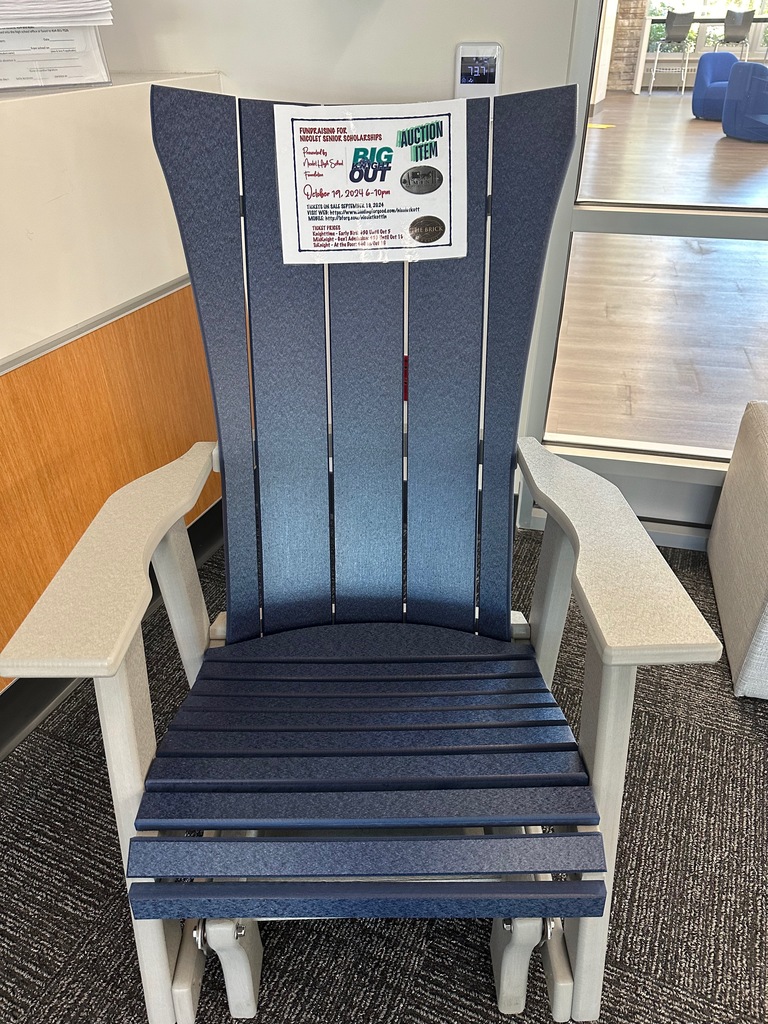 Nicolet-Themed Rocker-Glider for your patio, porch or in your sunroom or 3-season room. Comfy Adirondack-styled in Nicolet's blue and gray tones. Sip something cold in summer months, or warm and toasty in late fall and winter, all while gliding and rocking serenly in your Amish-crafted rocker - glider.