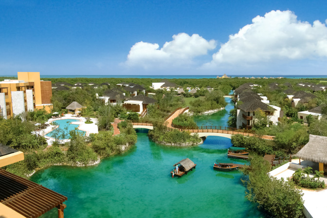 Tucked in and around a ribbon of crystal clear waterways, fairmont mayakoba riviera Maya is literally in the center of a luxurious gated community near the town of playa del carmen. To maintain the authenticity and delicate ecology, vehicles are parked at the entrance of the property and all other transport throughout the fairmont mayakoba is accomplished via covered boats called lanchas, electric golf carts, bicycles or on foot. Sheltered under the forest canopy, the property's distinguishing features include a willow stream spa with treetop treatment areas, a secluded beach alongside one of the world's largest reefs, nature trails and award-winning restaurants and lounges.