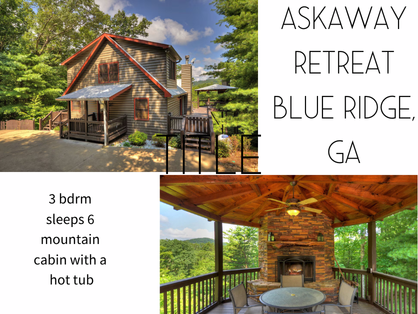 Askaway Retreat is a cozy and modern cabin, located conveniently in the heart of the Aska Adventure Area and just 5 miles to downtown Blue Ridge! This cabin boasts fully updated furnishings and ample amenities. Enjoy the spectacular long-range views from the spacious deck, or cozy up next to the outdoor wood-burning fireplace. The upper-level master bedroom is luxuriously appointed with a king-sized bed, TV and a private full bath. The main-level bedroom has a queen-sized bed and is located directly across the hall from a full bath. The lower-level bedroom is outfitted with twin bunk beds and is situated opposite the third full bath.