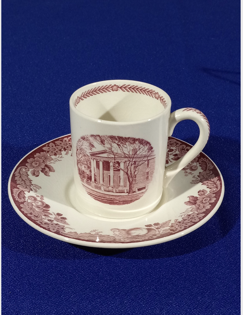 Harvard Tercentenary Wedgwood set of demitasse crimson and white china.