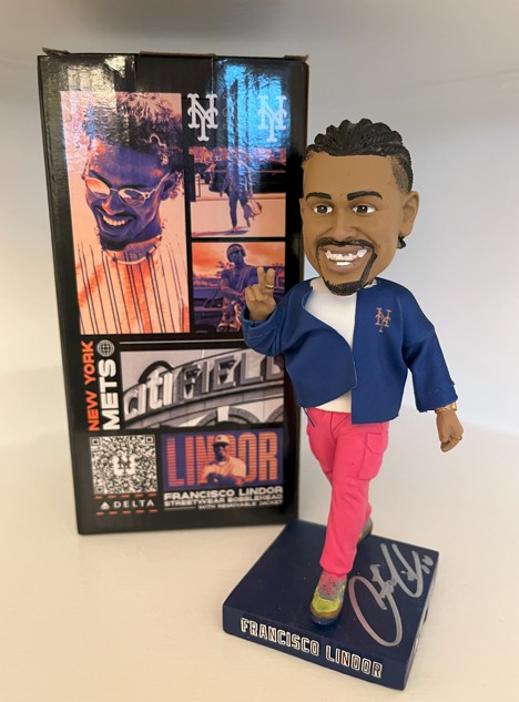 Autograph: Hand-signed by Francisco Lindor on the base of the bobblehead