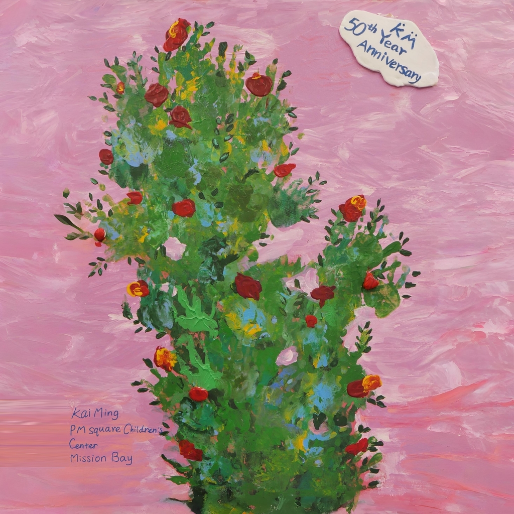 To Bloom is a radiant celebration of growth and resilience, created by the children of Kai Ming PM Square Children?s Center in Mission Bay. Against a soft pink background, a flourishing cactus rises tall, adorned with blossoms of vivid red and golden yellow. Each petal, brushstroke, and handprint reflects a collective vision of strength?reminding us that beauty thrives even in the most unlikely places.
