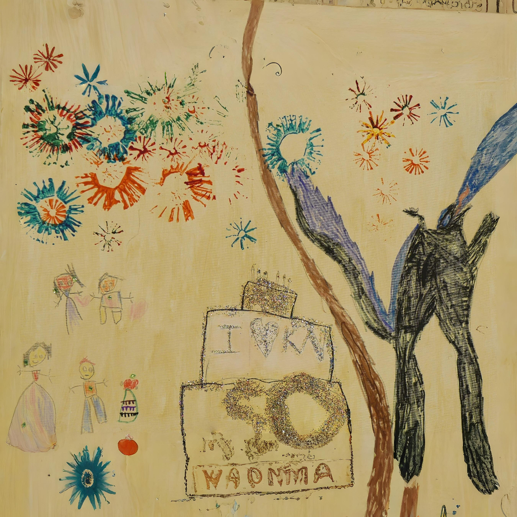 The piece captures a spirit of wonder and celebration, symbolizing both the joy of childhood and the strength of community. In every crayon mark and glitter stroke, we see how children interpret milestones not just as numbers, but as moments filled with family, friends, and shared triumph.