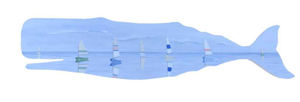 Her signature style features large-scale abstract coastal paintings, often embellished with 24K gold leaf, creating stunning statement pieces that shimmer with a unique energy. Nikki also explores more intimate forms, such as oval and round canvases adorned with sailboat scenes that evoke a sense of serenity and timelessness.
