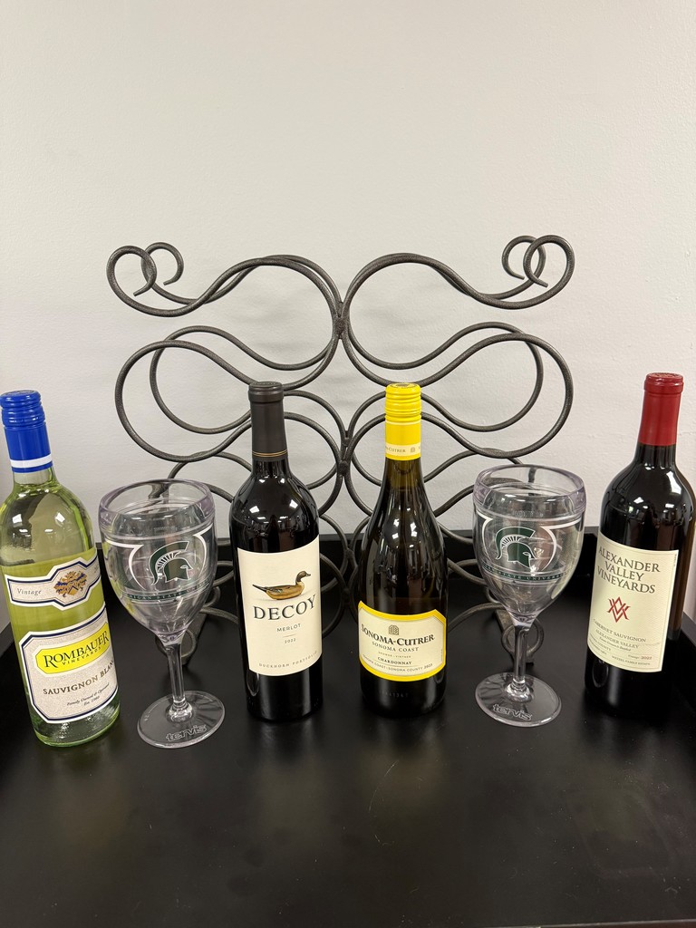 - Two Michigan State University wine glasses, ideal for toasting with Spartan spirit.