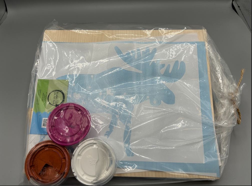 Looking for a gift for a kid in your life? This item is the perfect pick! Provided by Studio 154, this kids kit comes with all the supplies you would need to create your own personalized painting inclluding a piece of wood, stencils, three paint colors, and paint brushes!