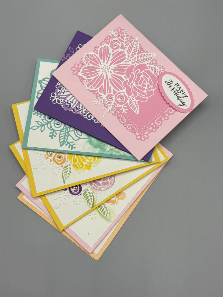 - Features a variety of embossed, watercolor, and die-cut floral designs