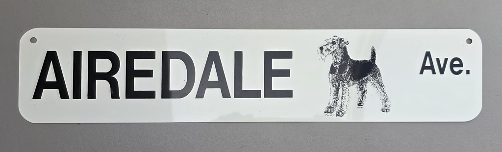 "Airedale Avenue" metal gate sign, 4" x 18"