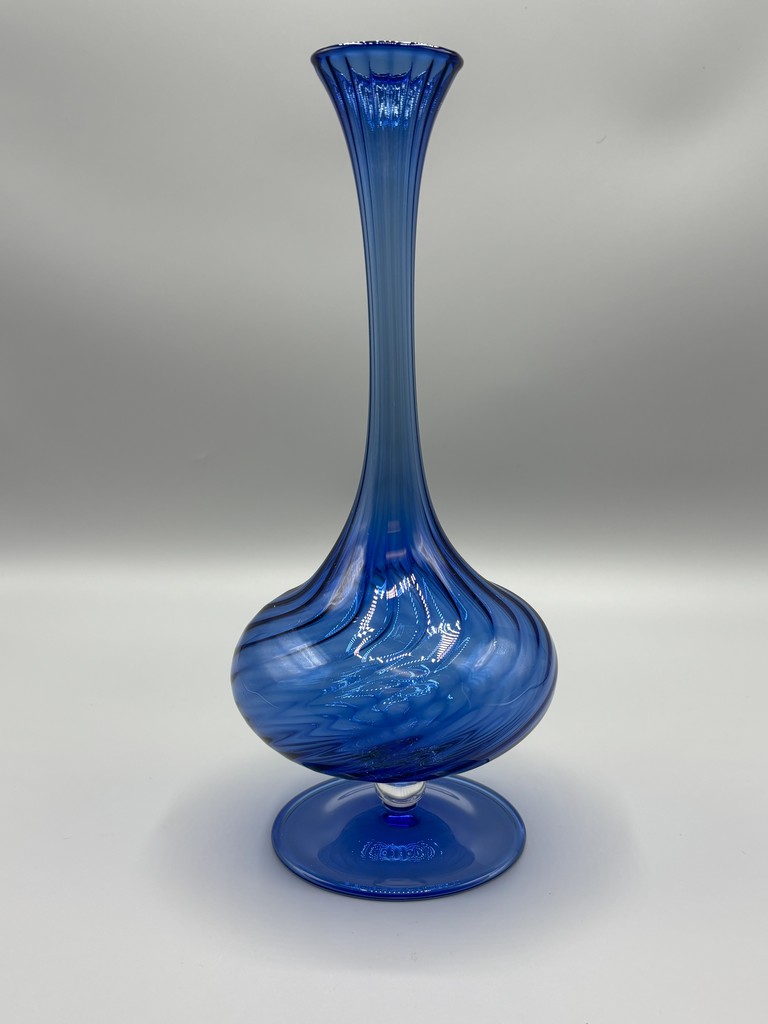 Artist: Tim Drier Color: Cobalt blue with swirl detail Use: Decorative or functional vase