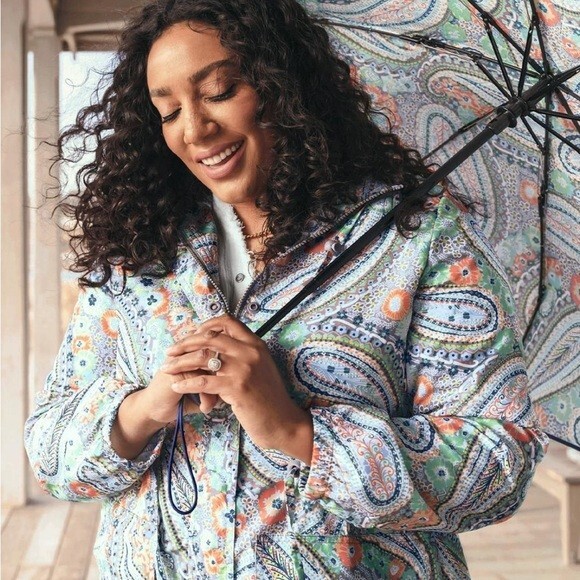 Be prepared for anything the day brings with this packable raincoat. You might even find yourself crossing your fingers for rainy days.