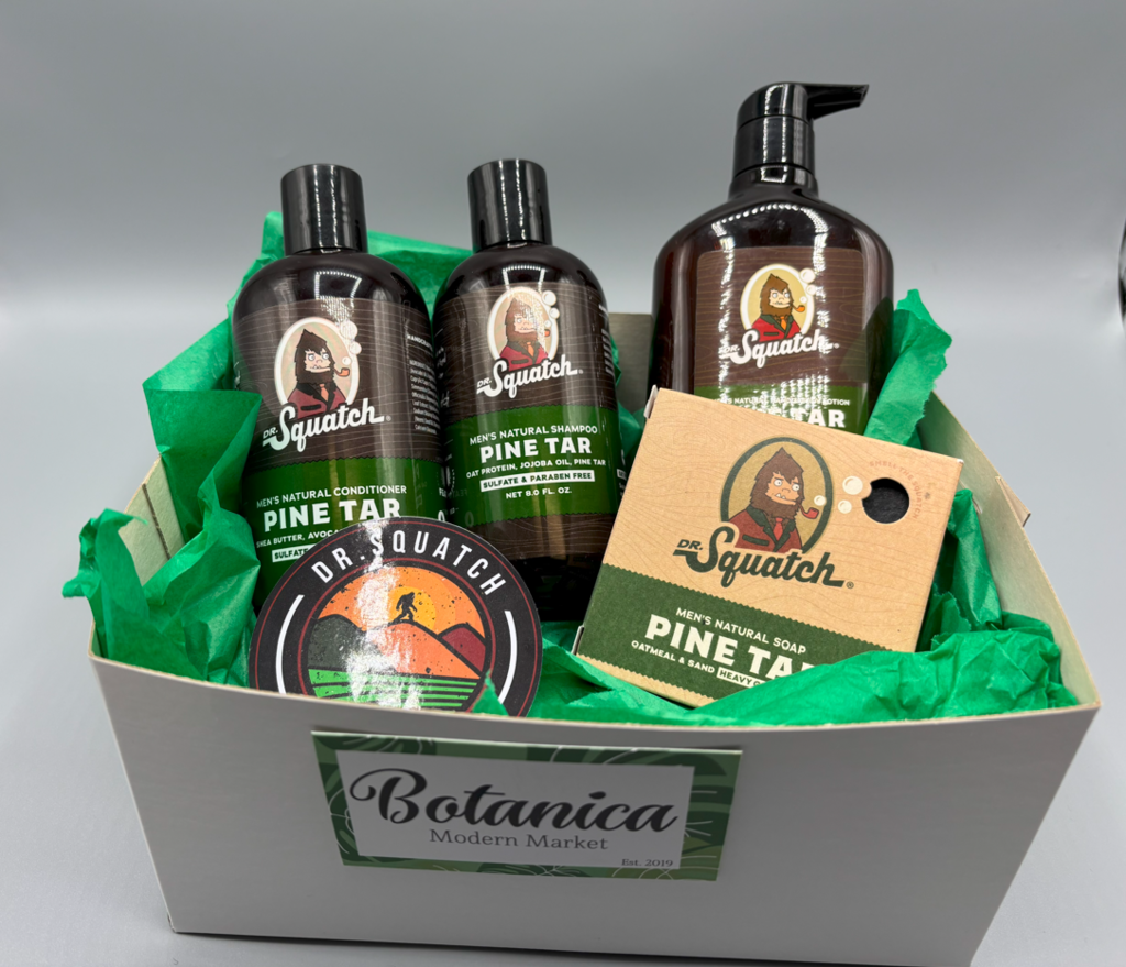 Treat yourself?or the ruggedly refined person in your life?to this premium Dr. Squatch Pine Tar care package, curated by Botanica Modern Market in Midland. Made with natural ingredients and packed with that signature woodsy scent, this bundle delivers head-to-toe freshness with no harsh chemicals.