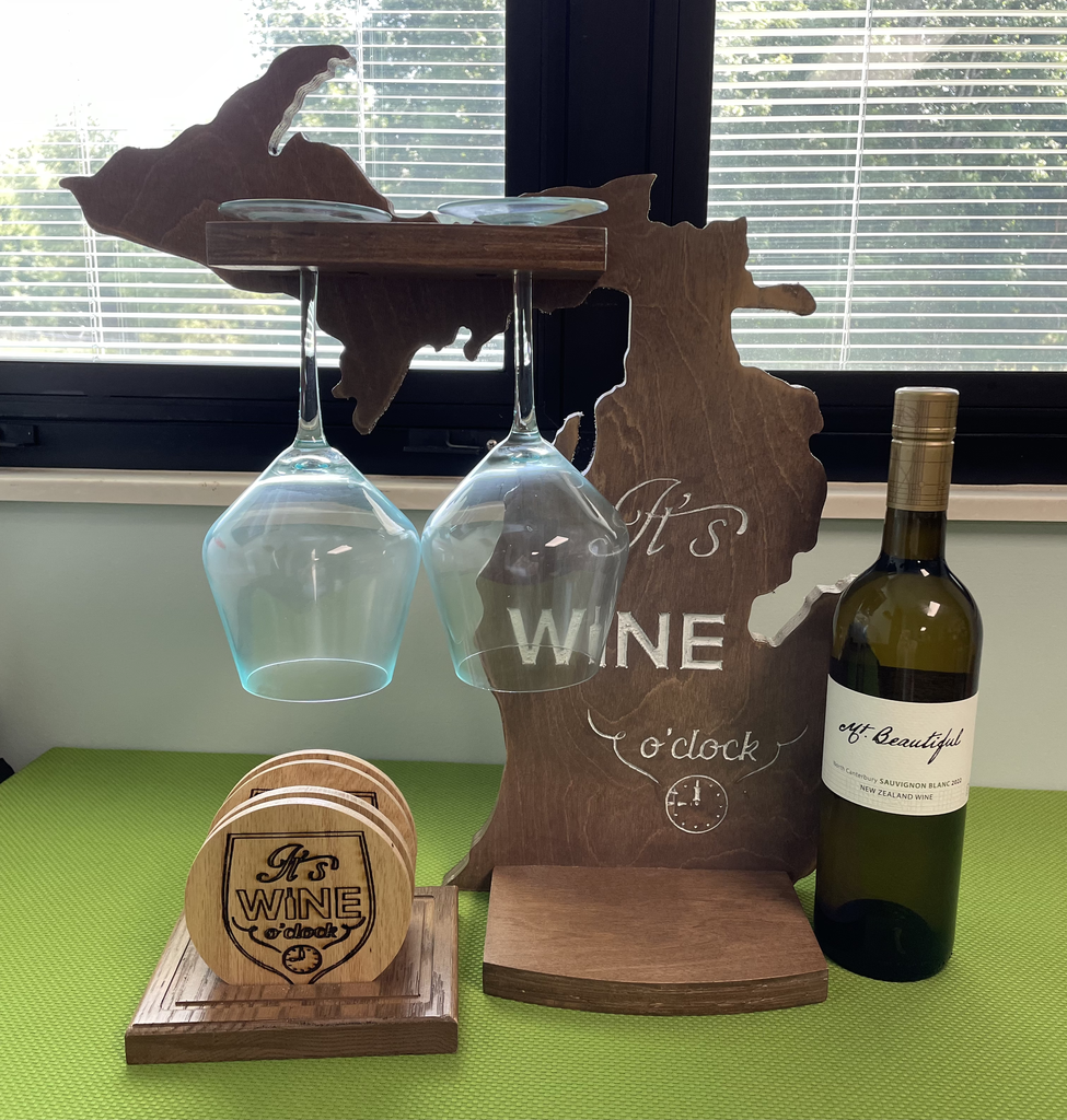 • "It's Wine O'Clock Somewhere" coasters (set of 4 with holder)