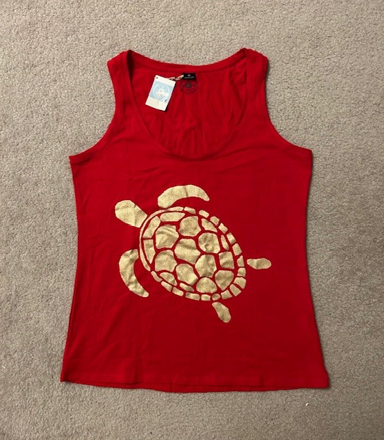 Turtle Love!  New with tags - Adorable RED Tank Top with a gold Foil Turtle on the front.  Size "Women's Medium".  Machine Washable, stylish scoop-neck design (and long enough to be tucked in - or worn casually loose).  Wear on the beach, boat, or anywhere.  Cotton-blend for extra comfort.  95% Cotton, 5% Spandex - size is 10.8"L and 10" W.  Available for shipping nationwide to Winner (with insurance) and can be picked up for FREE in Enfield, CT after the Auction.