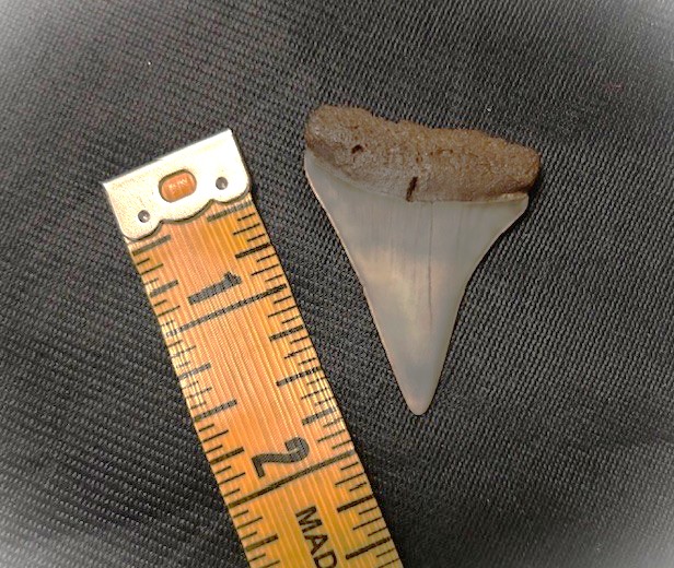 REAL "Jaws" Great White Shark Tooth! Museum-quality piece, found by Scuba Divers on "Shark Tooth Ledge" (110 feet underwater, 30 miles off the coast of North Carolina). Beautiful color, quality, and symmetry. Tooth is 2". Item can be shipped nationwide to Winning Bidder with insurance - or picked up for FREE in Enfield, Connecticut after the Auction. Unique item to celebrate "Jaws 50th Birthday"!