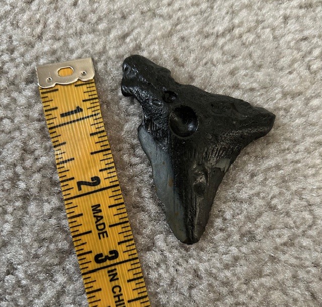 REAL - GIANT 3" long Megalodon Shark Tooth (and is the actual tooth, as seen in the individual photos in this listing). Discovered by Connecticut Scuba Divers diving off the North Carolina Coast (30 miles from shore, 110 feet underwater). Megalodons existed 2 million years ago and their teeth can be found DEEP in the Ocean. Each "inch" of Shark Tooth represents "10 feet" of Shark - so this item (a 3" Fossil Tooth) once belonged to a 30-Foot Shark! (This item is 100% authentic and can be verified by Dive Team.) It is available for shipping nationwide to Winning Bidder (with insurance) or can be picked up for FREE in Enfield, Connecticut after the Auction. Amazing antique item - and at least 2 Million Years Old!