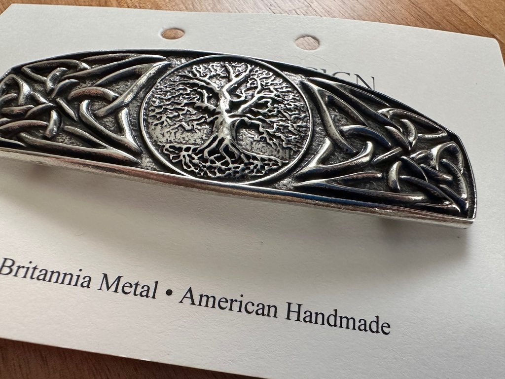 Hand cast from 100% lead-free Britannia metal right in our Santa Rosa, California workshop using quality clip mechanisms. This heirloom worthy piece is jewelry for your hair.