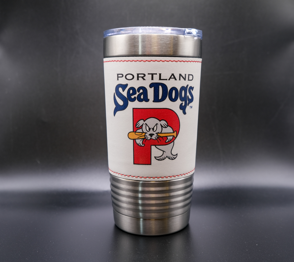 Stay hydrated and support your favorite local team with this stylish and functional 20oz white leather tumbler with slider lid!