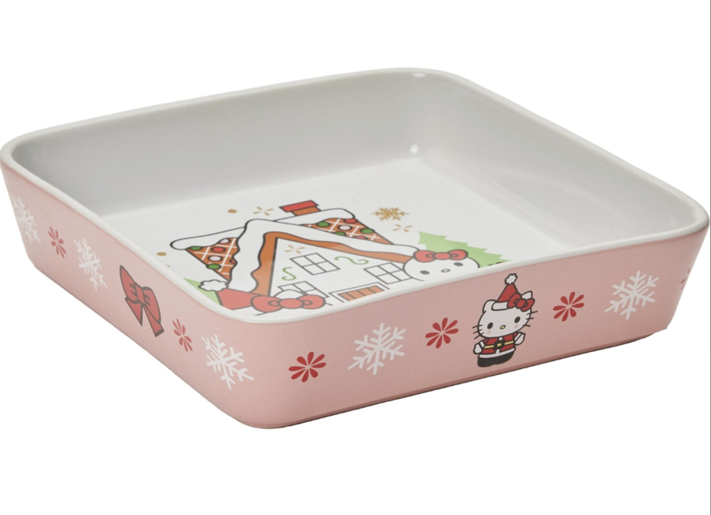 Bake up delicious holiday treats in this Hello Kitty Christmas Santa square baker, crafted from glazed ceramic with holiday print.