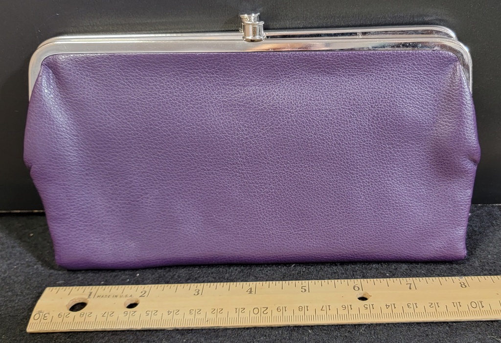 Double Clutch Wallet Magnetic Distressed Leather Lilac Purple
