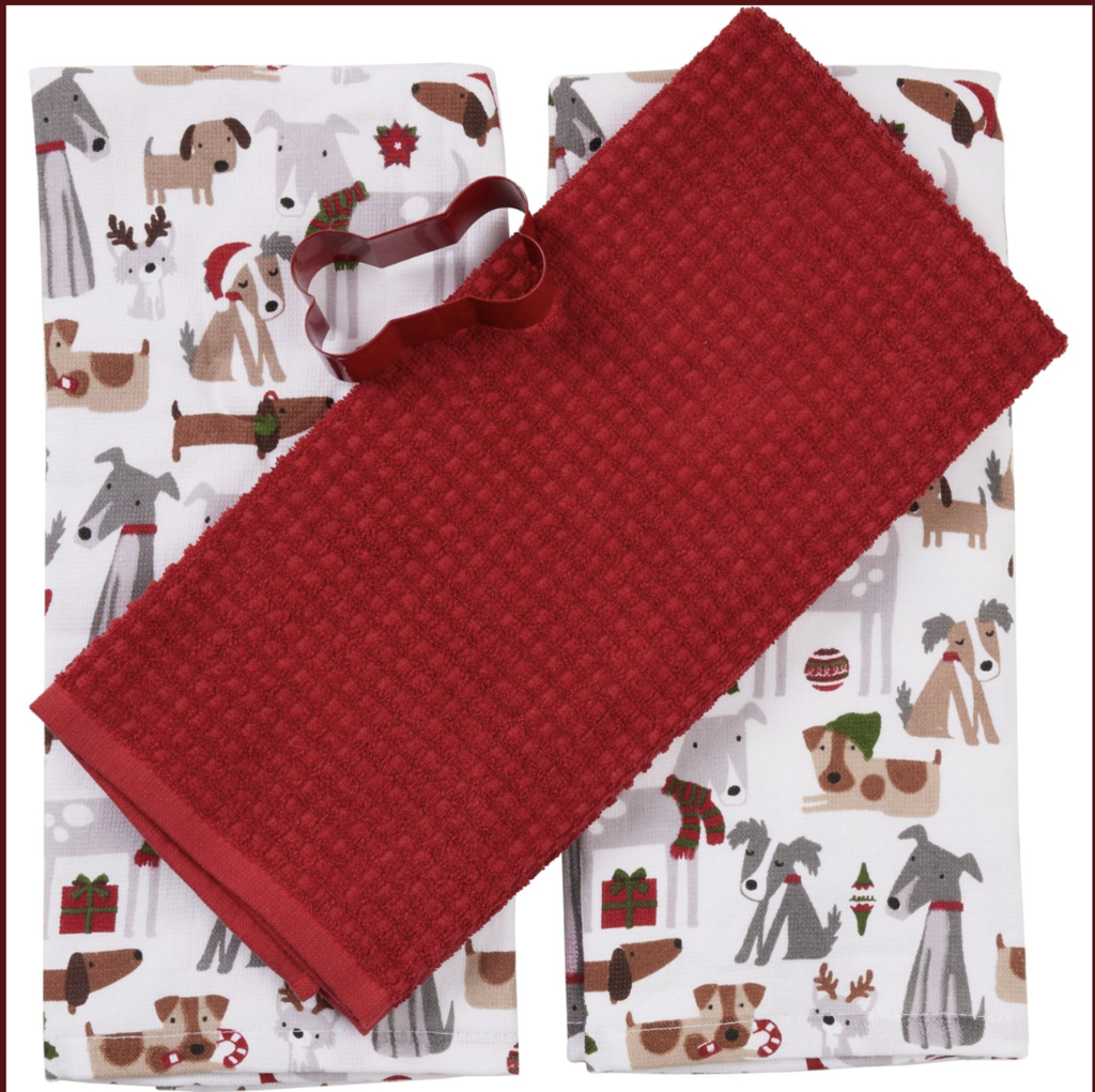 Happy Pups Christmas Kitchen Towel Set with Cookie Cutter