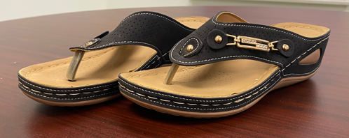 Elevate your look with the perfect sandals! These black sandals, with brown soles, and gold colored detailing are the perfect addition to any oufit!