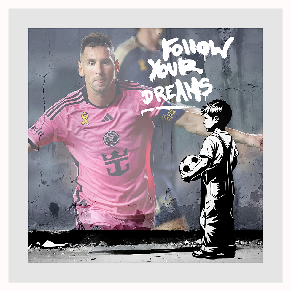 Banksy Leo Messi Follow Your Dreams Framed Pop Art Collage