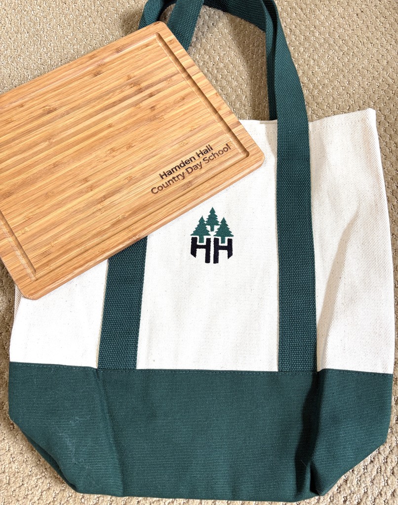 Show off your Hornet pride in style! This beautiful Hamden Hall?branded cutting and display board is perfect for entertaining or adding a touch of school spirit to your kitchen. It comes paired with a matching Hamden Hall tote bag?ideal for carrying groceries, game-day snacks, or everyday essentials and apron!