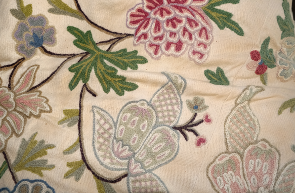 Beautiful 82" Cotton Floral Embroidered Table Cloth (Antique)
