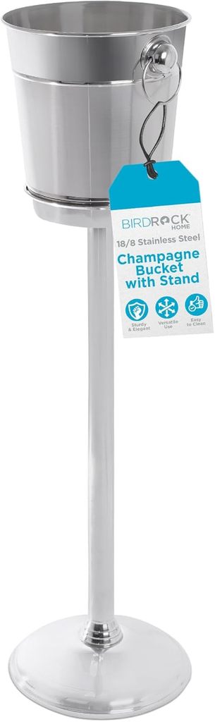 BirdRock Stainless Steel Champagne Bucket w/ Stand (32" free standing ice holder) and 750ml Vueve Clicquot with Ice Jacket