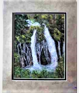 Local artist, Marion Lauter, brings to life a moment in time at Burney Falls in Shasta County, California. The lifelike imagery of the Burney Falls environment is created through a wet felting technique with wool and other fibers that truly captures the magic of the waterfalls.