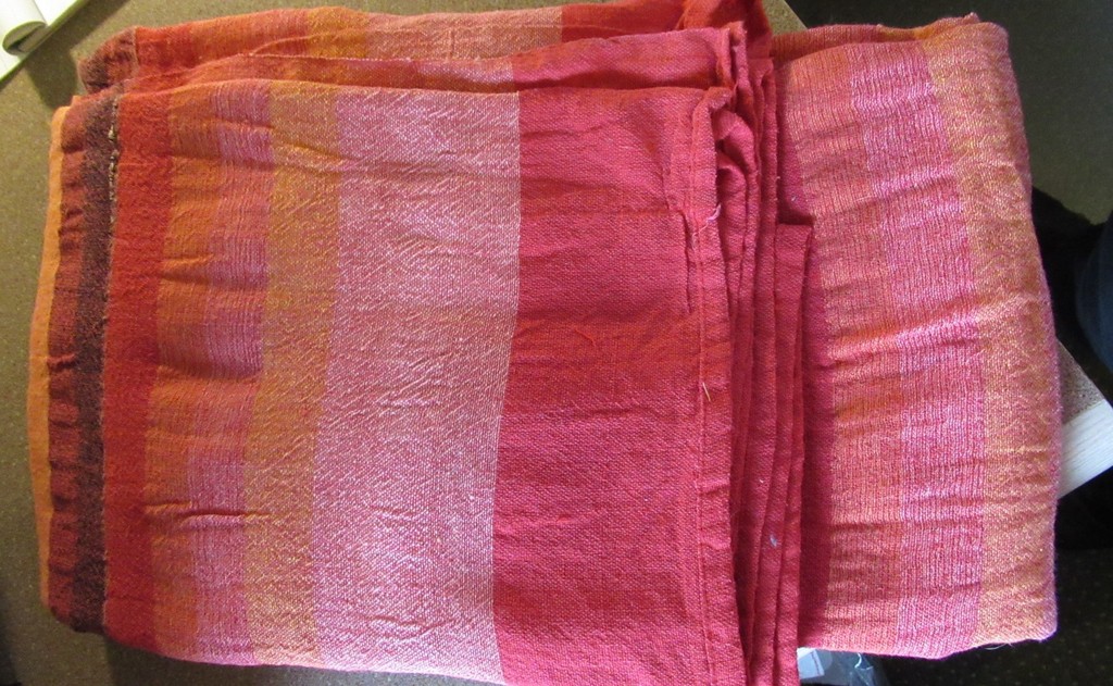 This vibrant, like-new double-size bed spread from India Arts is a stunning and versatile addition to any home decor. Made in India from 100% light weight cotton, and in a rich palette of red, orange, and yellow, accented with some black highlights.