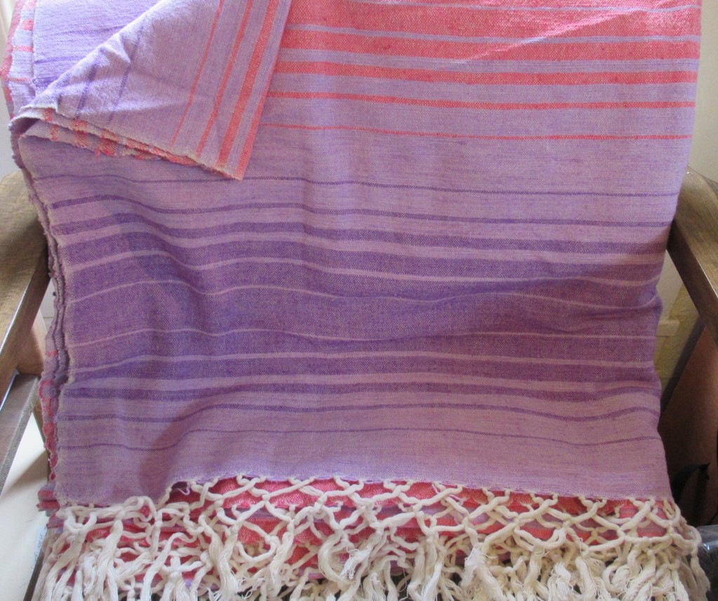 This like-new, handspun and hand woven throw is a beautiful and unique addition to any home. A product of the "Imagination" manufacturer located in the renowned Auroville community in Pondicherry, India, this medium-weight throw is crafted from 100% pure cotton.
