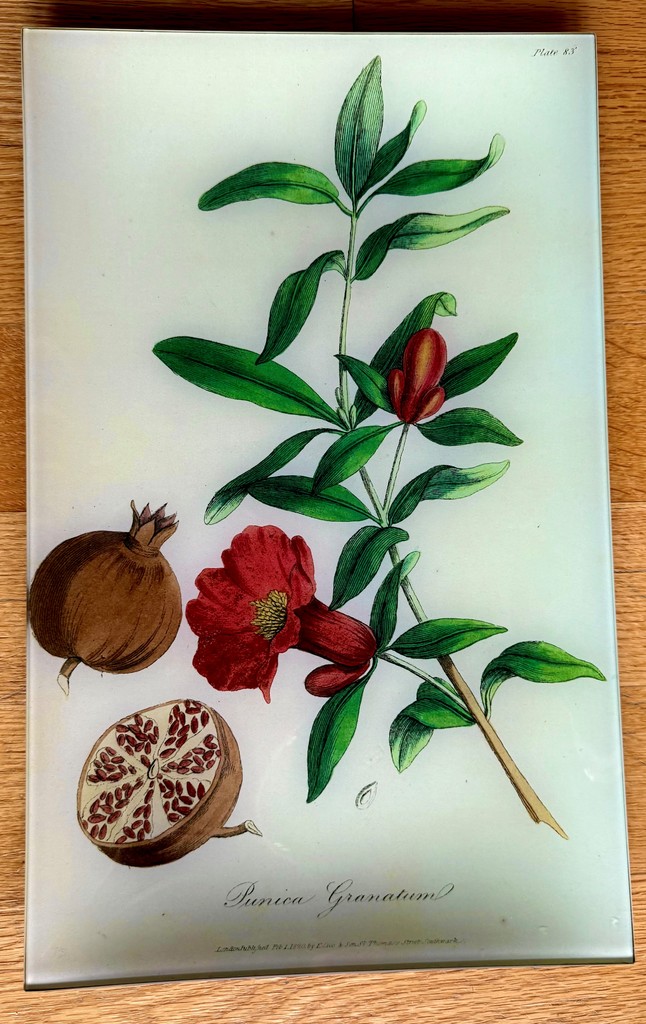 This handmade tray is collaged paper under hand-blown glass by famed artist John Derian, whose designs are based on a collection of antique and vintage prints. The tray measures 10x16.