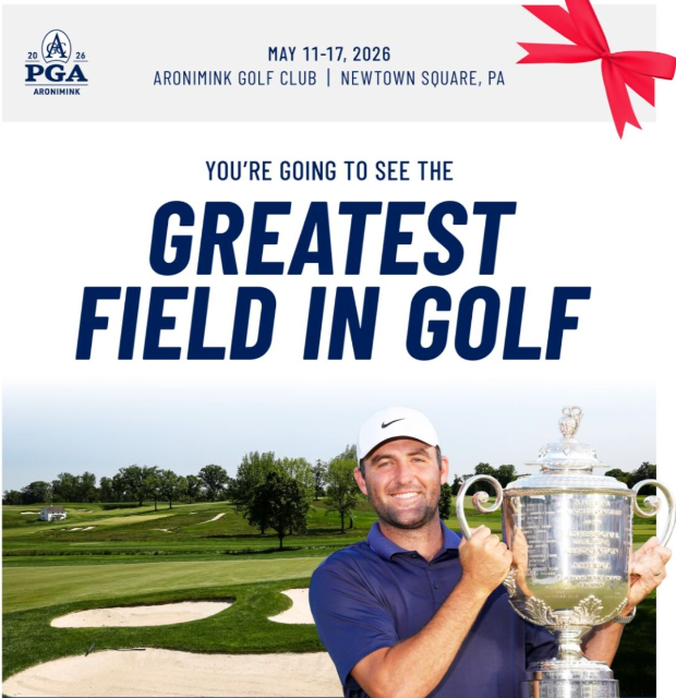 Major Championship golf returns to Philadelphia for the 108th playing of the PGA Championship in May 2026. Join us at Aronimink Golf Club in Newtown Square, PA to watch the strongest field in golf compete for a Major Championship. Don't miss your chance to be a part of history and witness the crowning of the next champion in the City of Brotherly Love.