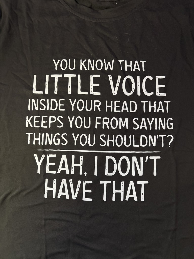 2XL Novelty t-shirt black with You Know that Little Voice in Your Head that Keeps you from Saying Things you Shouldn't Yeah I Don't Have That