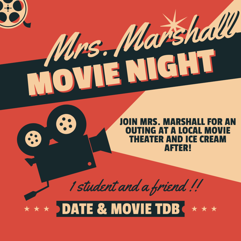 Do miss out on this very special experience! Mrs. Marshall will be taking out one student and a friend of their choice to the movies and ice cream!