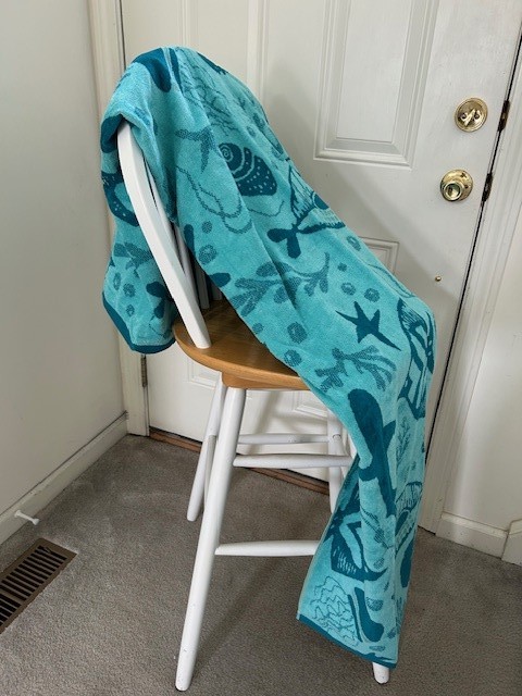 BEAUTIFUL: Big, warm, comfy Towel. Ideal Gift for any Ocean Lover - or use at the Beach, Bath, Picnics, Boat, or Pool. (Note: There are 4 of this same Towel in this Auction, if you would like Matching Sets, for family and friends.) OVERSIZED LUXURY TOWEL - to wrap yourself up (it's 7 foot length by 3 foot width). Towel has a REVERSIBLE Design, with light colored same-pattern of Sharks, Fish, and Coral - in a popular Teal Color (see photos). Easy Laundry care: this Towel is machine-washable and can be placed into the Dryer. (Contains 83% Cotton and 17% Recycled Polyester.) Available for shipping nationwide to Winning Bidder - or pick up for FREE in Enfield, CT. One of our favorite patterns!